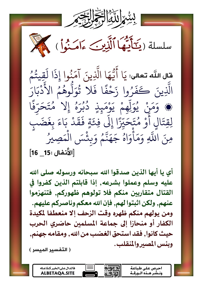 سلسلة يا أيها الذين آمنوا إذا لقيتم الذين كفروا زحفا فلا تولوهم الأدبار ودعوا الي سبيل ربك The Invitation To The Way Of Thy Lord