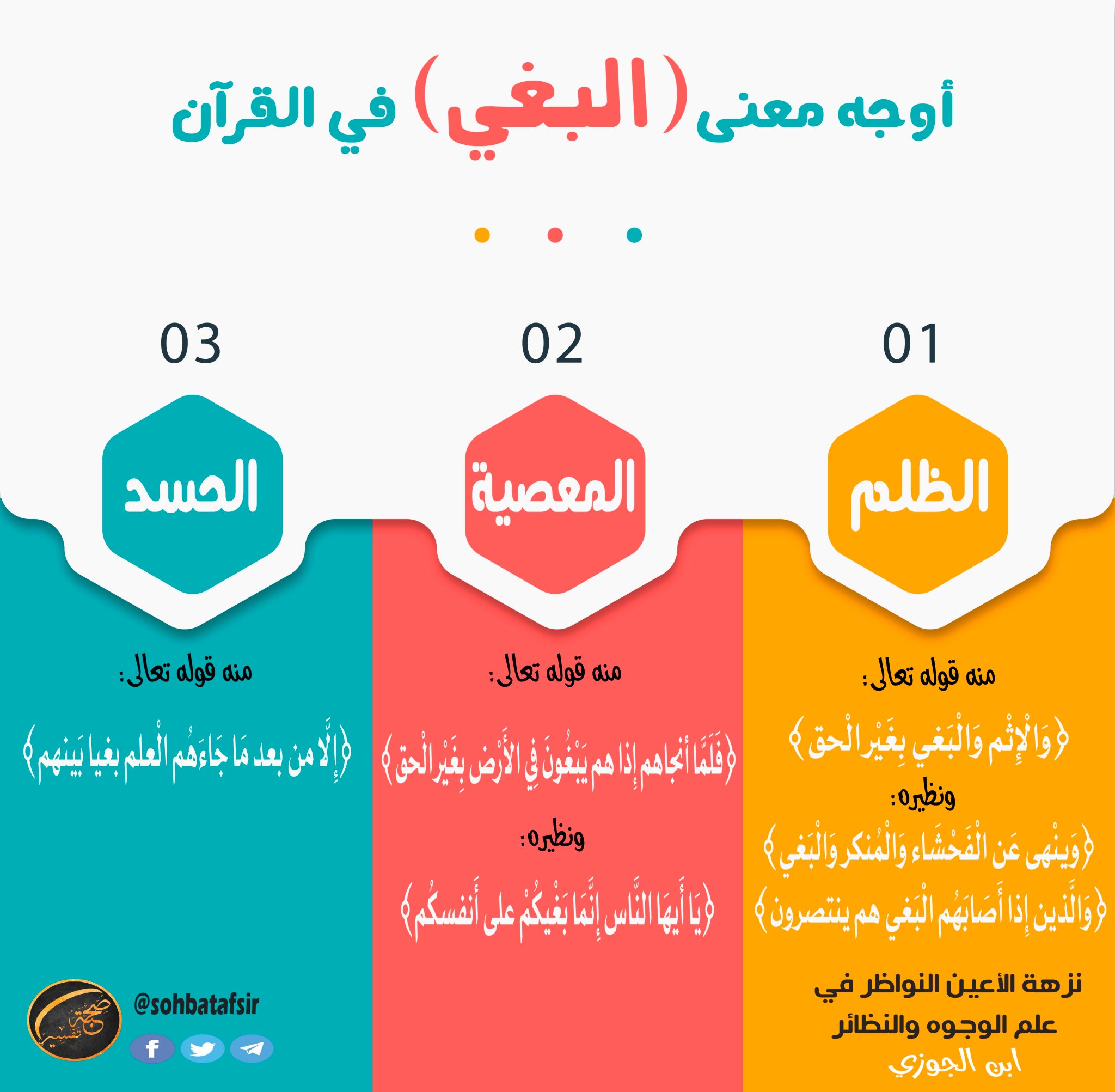 صحبة تفسير On Twitter قال الزجاج معنى البغي في اللغة قصد الفساد ويقال بغى الجرح يبغي بغيا إذا ترامى إلى فساد أوجه معنى البغي في القرآن 1 الظلم 2 المعصية 3 الحسد