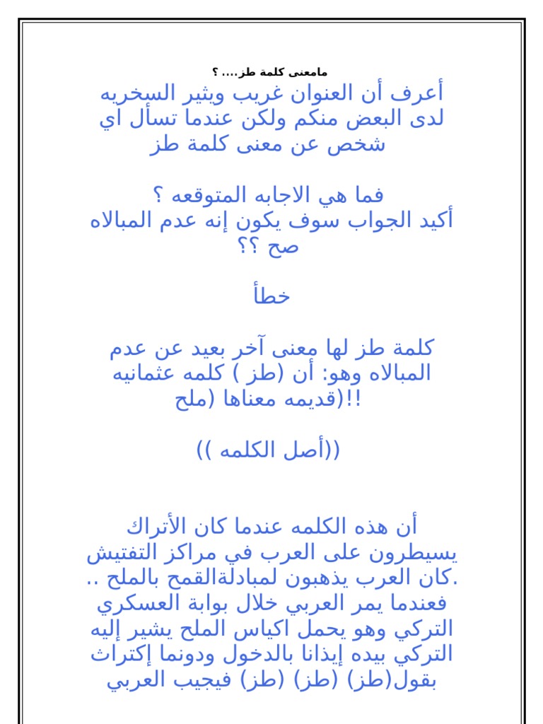 ما معنى كلمة طـز طـز كلمة تركية جماليات اللغة العربية Facebook