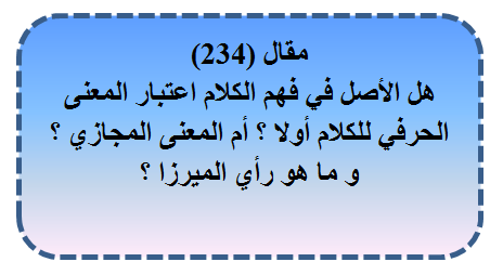 Ibrahim Badawy مقال 234 هل الأصل في فهم الكلام اعتبار المعنى الحرفي للكلام أولا أم المعنى المجازي