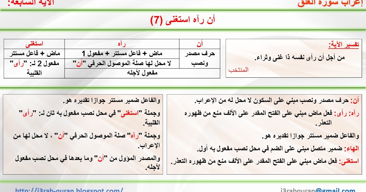 إعراب القرآن الكريم إعراب أن رآه استغنى