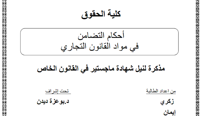 مذكرة ماجستير أحكام التضامن في مواد القانون التجاري Pdf